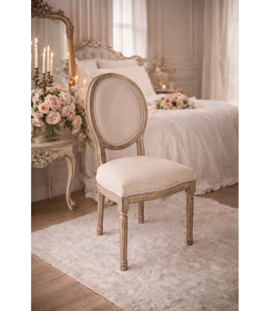 Chaise médaillon tissu lin