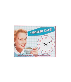 Pendule vintage "l'instant café" 32x24 Fer+papier