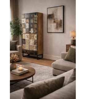 Buffet 4 portes "mixt couleur" pieds métal - L 75 X H 145 x P 40
