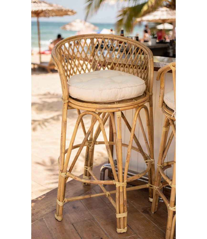 Fauteuil de bar en rotin avec coussin