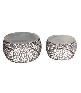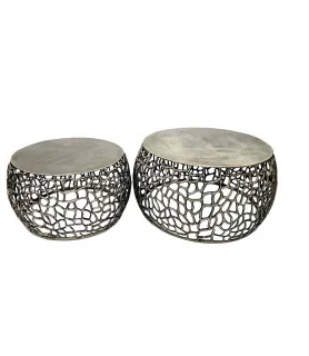 Set de 2 tables salon silver antique Ø68 et Ø58