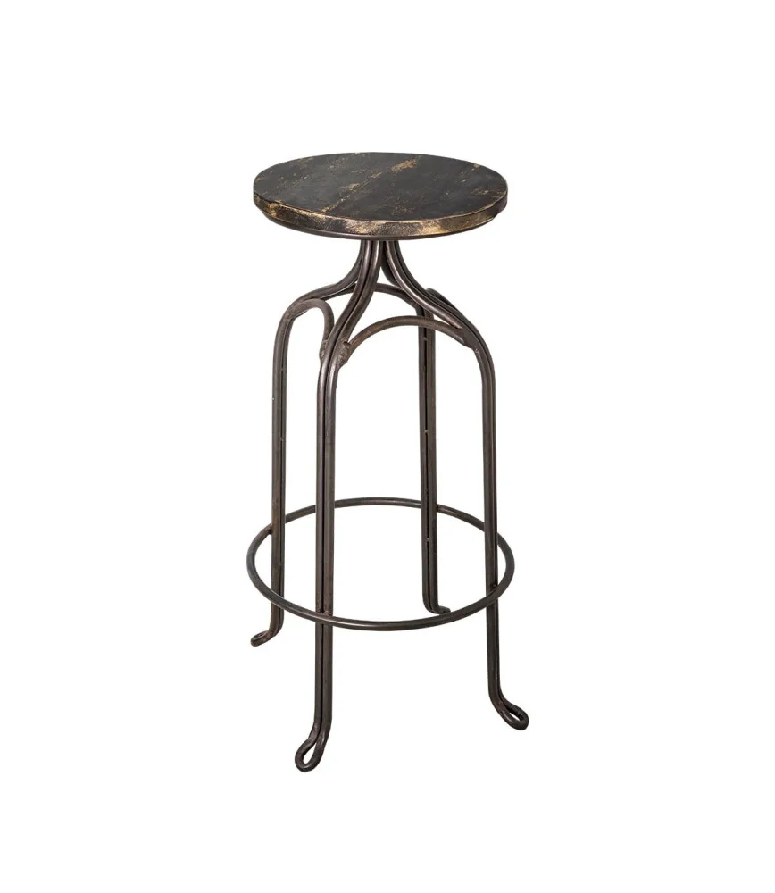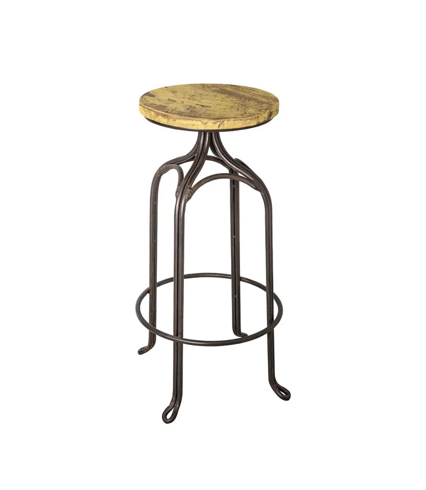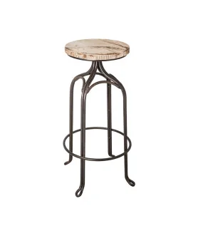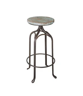 Tabouret de bar fer forgé assise bois peint